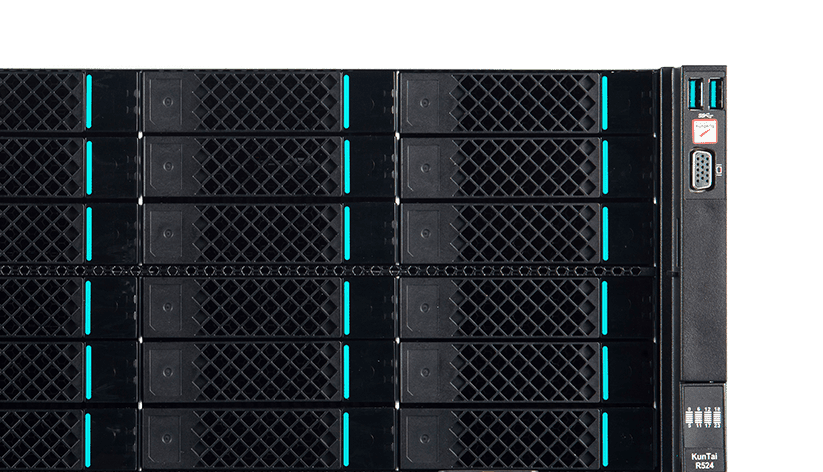 KunTai R524 存储型服务器是PA国际厅数码基于鲲鹏处理器推出的新一代 ARM数据中心服务器。。。主要面向存储业务,,,,具有海量存储、、高性能、、、、低功耗以及易扩展的特点,,,适合为大数据分析、、、软件定义存 储等应用场景的工作负载进行髙效加速。。
